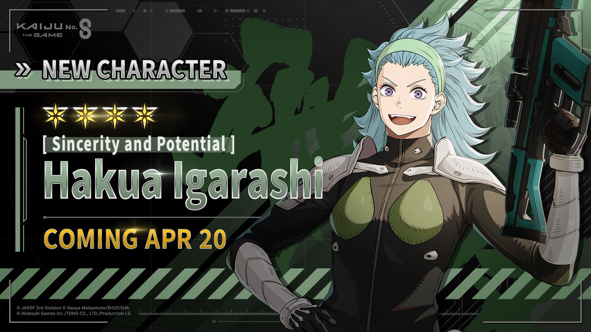 ◤ #KaijuNo8THEGAME Special Event [Blazing Sisterhood] Sneak Peek ◢ Hakua Igarashi (VA: #MayukoKazama) from the Third Division is a peer of Kafka and the others, and the younger sister of Jura Igarashi, Captain of the Second Division! These
