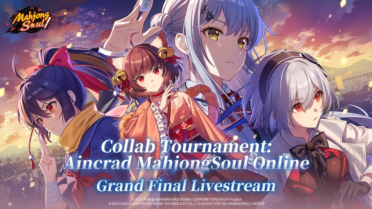 Mahjong Soul x Sword Art Online Tournament: Aincrad MahjongSoul Online - Grand Final Livestream After countless stages, the Grand Final is finally here! Follow and repost for a chance to win Fortune Charm(30d)! 3 winners will be selected after the livestream ends. There will