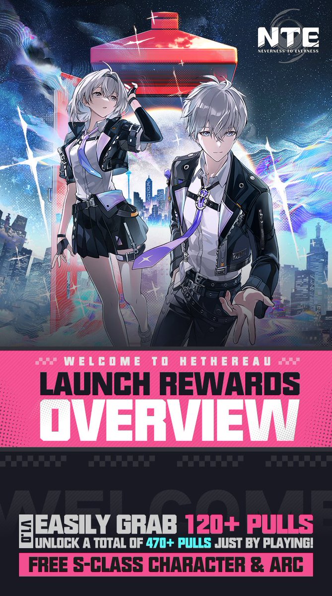 NTE Launch Rewards & How to Claim Them NTE is coming to all platforms on April 29! Appraisers, your launch rewards breakdown is ready. Here's everything you need to know. Version 1.0 gets you 120+ pulls just for showing up, and with earned gameplay rewards, you can rack up o