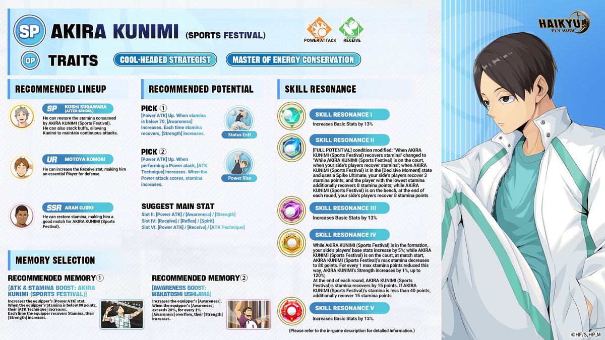 【SP Player Spotlight 📝】 Introducing SP Player AKIRA KUNIMI (Sports Festival) "Don’t burn energy for no reason." A composed strategist with a "Burning Spirit"! Recommended: Power Attack boost 🌟 📌 Check the image for full details 👇🏻 Stay tuned for the next Player
