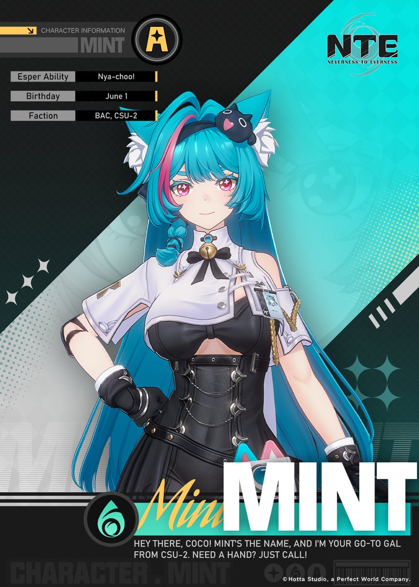 First Impressions丨Mint "Looking for me? (=ↀωↀ=)✧" "Mint's here!" NTE launches on all platforms April 29! Pre-register now >> #NTE #NevernesstoEverness #NTELaunch0429 #Mint