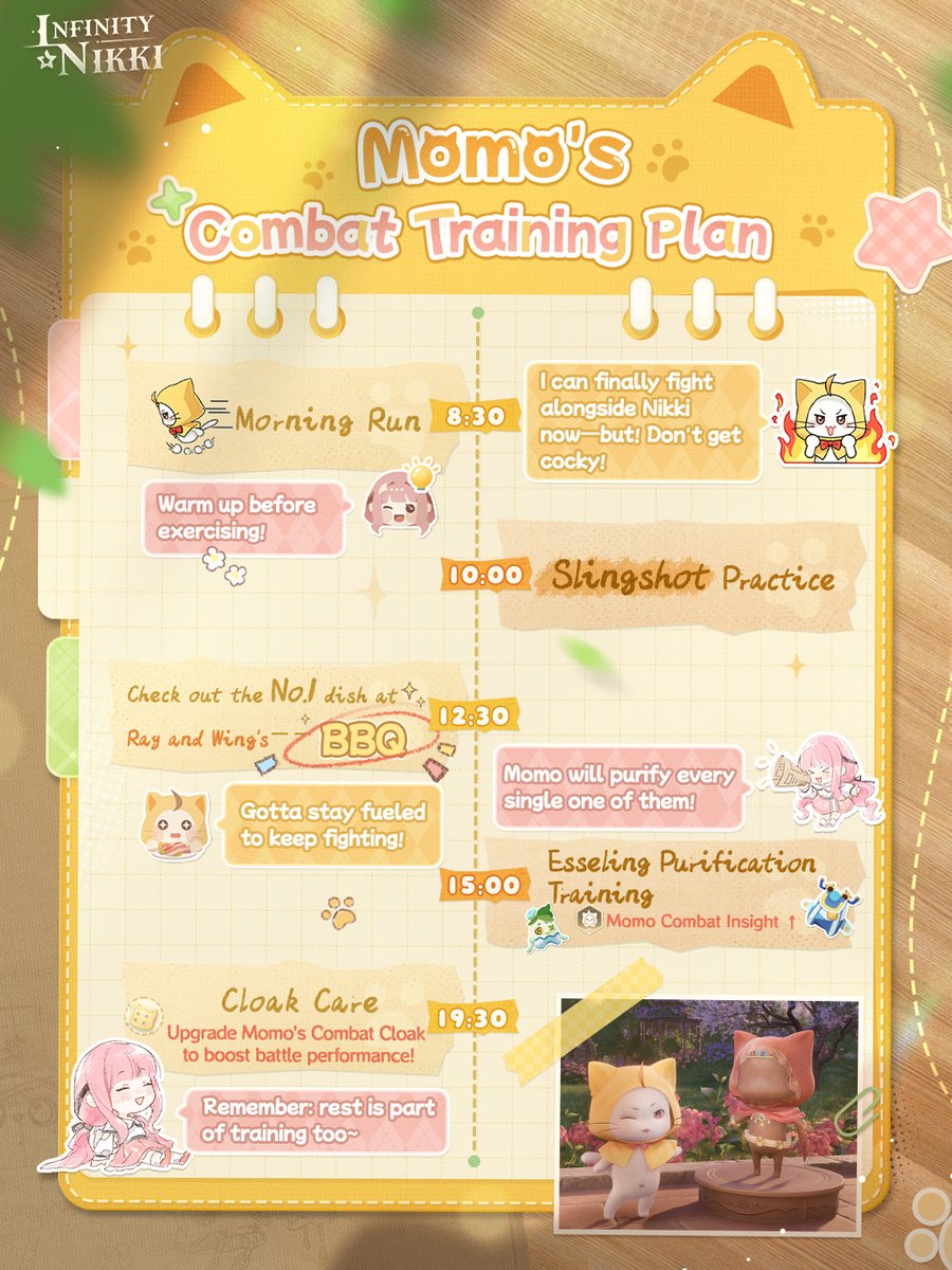 ♾Whimsical Moments | Momo's Combat Training Plan "Nikki, I'm going to get stronger—I'll fight right by your side!" "One step at a time, Momo. With you around, I already feel super safe." "I've grown stronger! I'm not afraid of anything now!" —— ➤ Infinity Nikki Version 2.4