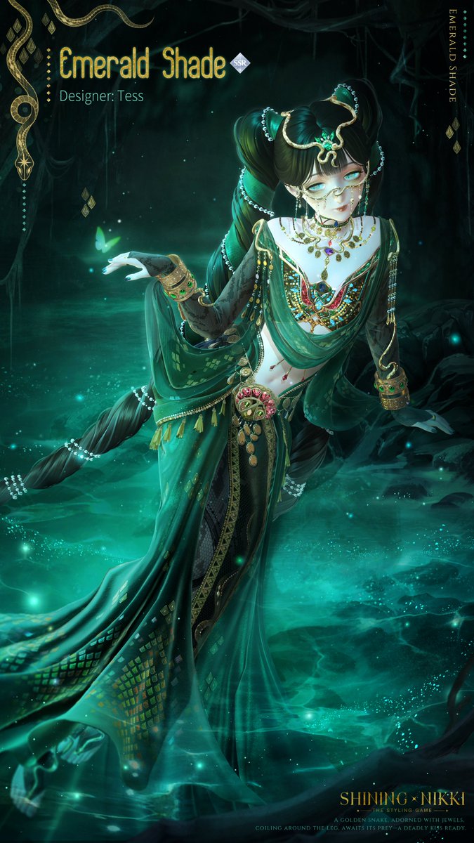 ✨Momo's Notice✨ The gown spreads like deep waters, as dark green scales shimmer on the hem. The [Heart of Emerald] event will be available! Event Time: After the update on 3/31 - 4/13, 23:59 >>>Download Game: #ShiningNikki #Papergames